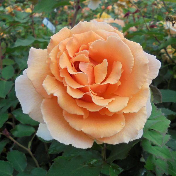 ひらひらと波打つフリルチックな花びらに、ふわりと咲くバフ・アプリコットの華麗なるバラです。