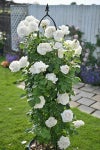 強剪定すれば春は中型のシュラブ樹形に、夏以降に伸びるシュートでオベリスクやフェンスなどの小さめのつる仕立てが可能。